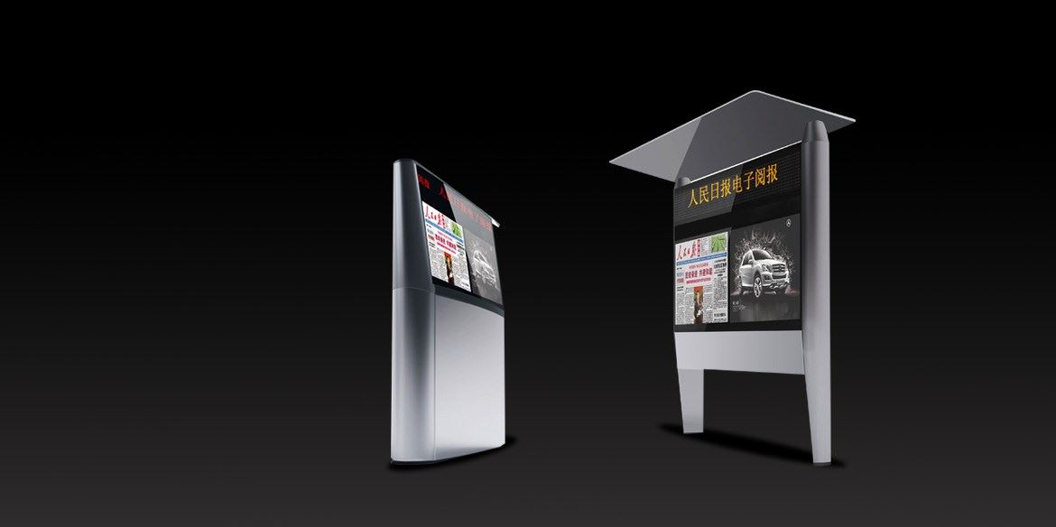 戶外電子閱報欄分成有頂棚和無頂棚兩種款式,適用于不同的公共場所供人們閱讀。