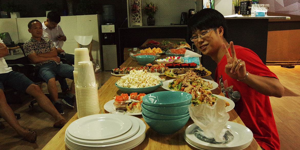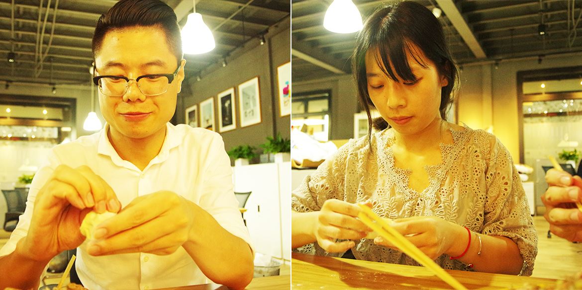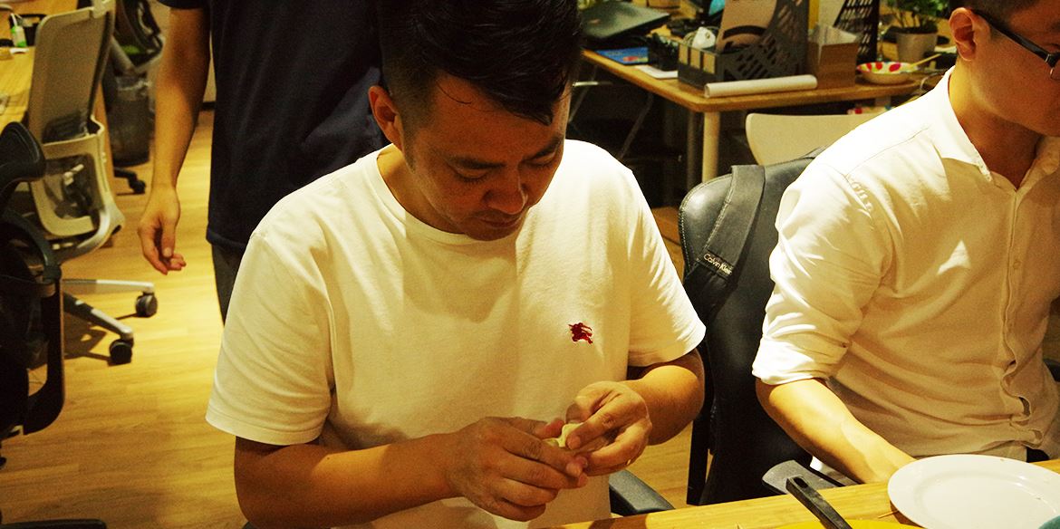我們每個人都是岸峰這個大家庭中的一份子,慶典現(xiàn)場,大家一起剁餃子餡、搟面皮…同心協(xié)力一起包餃子共同完成十年盛宴。