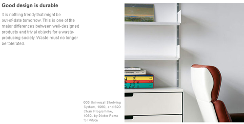 It is nothing trendy that might be out-of-date tomorrow. This is one of the major differences between well-designed products and trivial objects for a waste-producing society. Waste must no longer be tolerated.