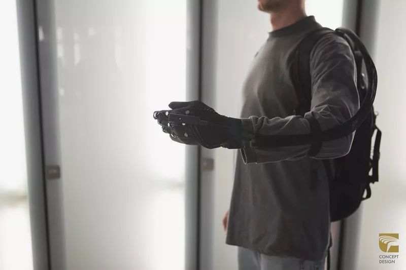 這是為視障者設(shè)計(jì)的輔助產(chǎn)品。通過感官代替科技,幫助使用者用手來(lái)看世界。深度攝影機(jī)產(chǎn)生的3D映像會(huì)投射并產(chǎn)生震動(dòng)傳達(dá)至手背,幫助使用者避開障礙物,安全行走。