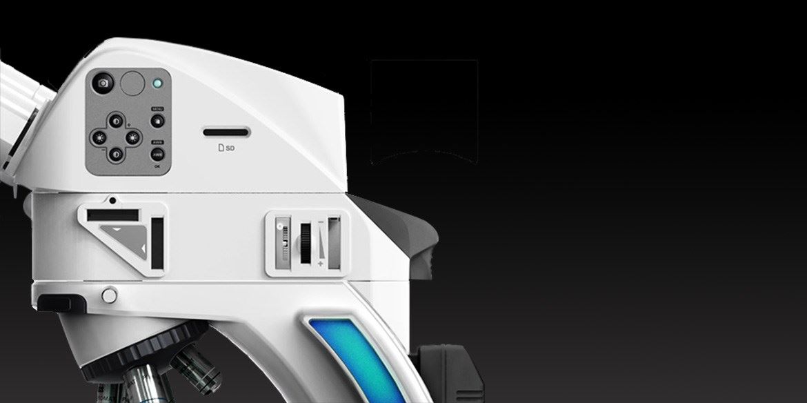 岸峰團(tuán)隊(duì)為卡爾蔡司獨(dú)家定制的這款顯微鏡中,主體不動(dòng)的部分均用白色展示,干凈,簡潔。按鈕、旋轉(zhuǎn)、操作等部位用灰色,黑色區(qū)別標(biāo)示,更精準(zhǔn)。